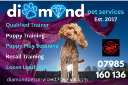 Diamond Pet Services offering Puppy Training, Puppy Socialisation, Adult Dog Training Classes, One to One Training, Dog Walking and Pop in Visits ( for dogs and cats) in Thornton,Cleveleys, Bispham, Fleetwood and surrounding areas.